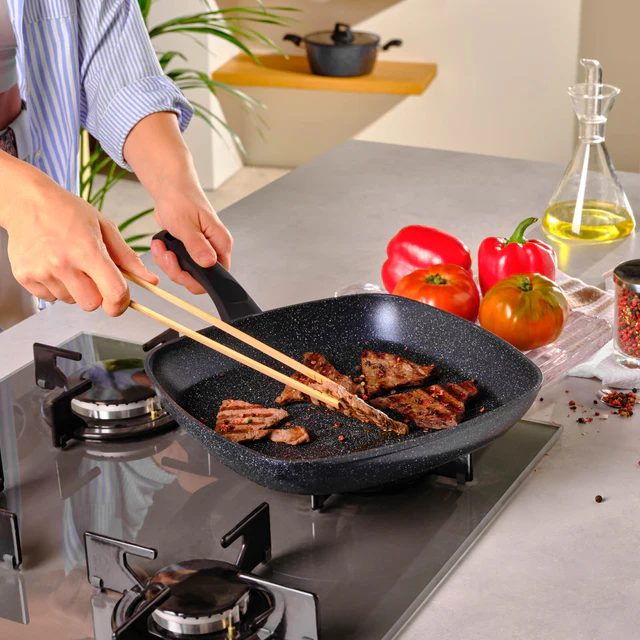 Aqua serija proizvoda poboljšava okus vaših jela ravnomjernom raspodjelom topline. Mramorni premaz koji ima maksimalnu otpornost na toplinu i neprianjajuća svojstva olakšava čišćenje zahvaljujući svojstvu otpornom na mrlje.