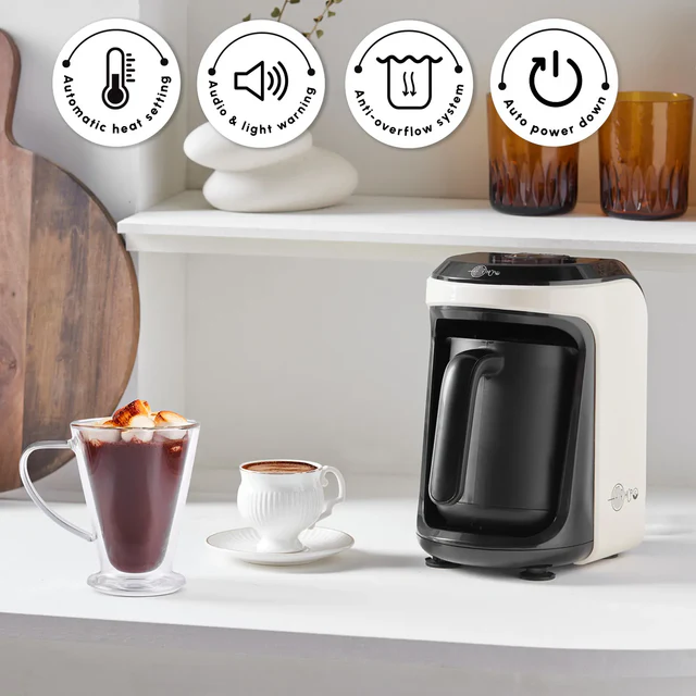 Turska kafa s mlijekom, pržena turska kafa, varijante kafe s mlijekom ili topla čokolada, što god želite piti; Karaca Hatır Hüps Milk aparat za tursku kafu je s vama! Možete savršeno ugostiti svoje goste s ovim aparatom za kafu s mlijekom koji priprema vašu kafu istančanog okusa. Hatır Hüps bit će nešto najvrjednije u vašem domu s okusom turske kafe koja se polako kuha na žeravici i mliječnih napitaka koje možete pripremati po želji. Ovaj aparat za mliječnu tursku kavu, koji je prvi i jedini u svijetu, ne zagori kavu zahvaljujući automatskom podešavanju topline i priprema je na idealnoj temperaturi. Štoviše, sa sustavom protiv prelijevanja, kave koje se prelijevaju u trenutku odvraćanja pažnje i tonući pultovi sada su povijest. Ne može se smisliti ništa bolje od brzih i ukusnih kava…